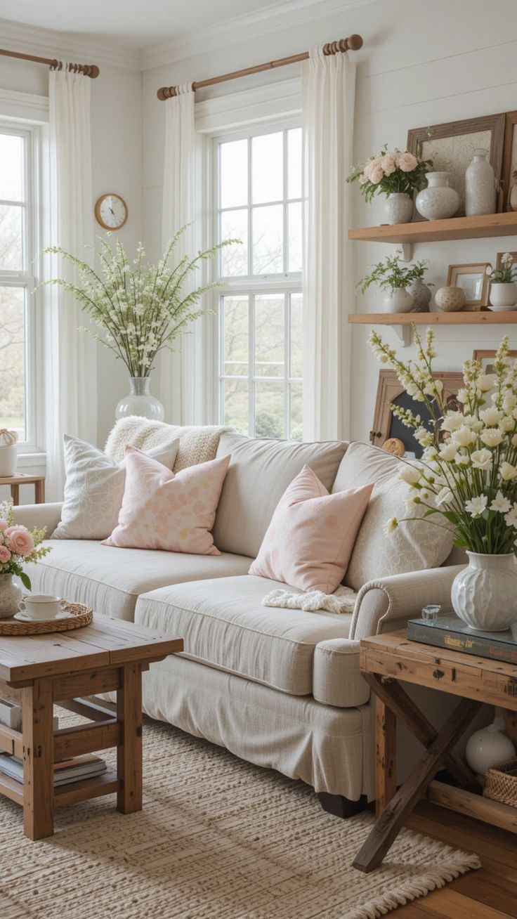 This approach keeps farmhouse charm intact while giving the room a light, spring-ready energy.