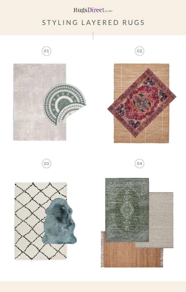 - Start with a neutral base rug (jute, flatweave, or low-pile)