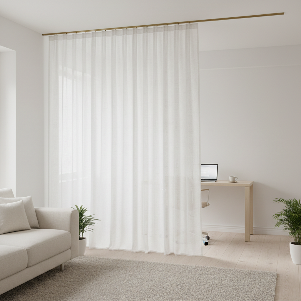 - Texture over color: Using sheer linen adds warmth and visual interest without the heavy look of solid partitions.