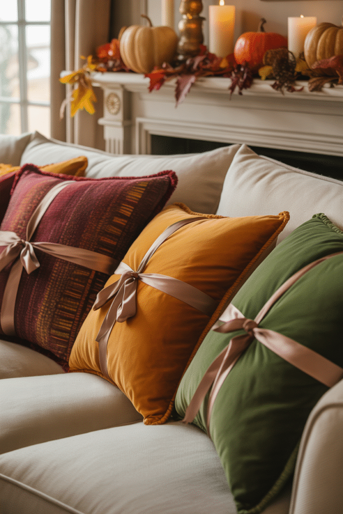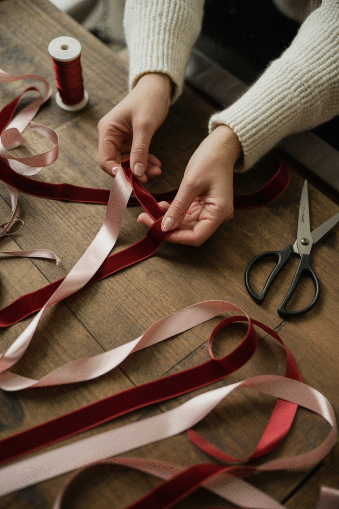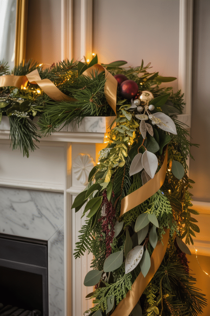Create a cascading ribbon garland using satin and velvet strips in holiday tones. Tie them to string or twine and hang loosely across your mantel. It’s an affordable way to make your decor look custom.
