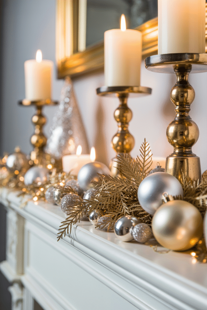 Mixing metals adds a touch of glam without going overboard. Combine gold candlesticks, silver ornaments, and champagne-colored garlands. Stick to two tones max to keep it chic, not chaotic.