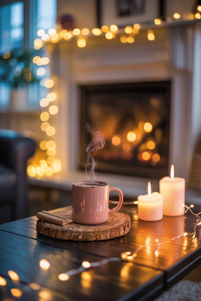 - Cozy & Warm: Soft textures, neutral tones, and twinkle lights.