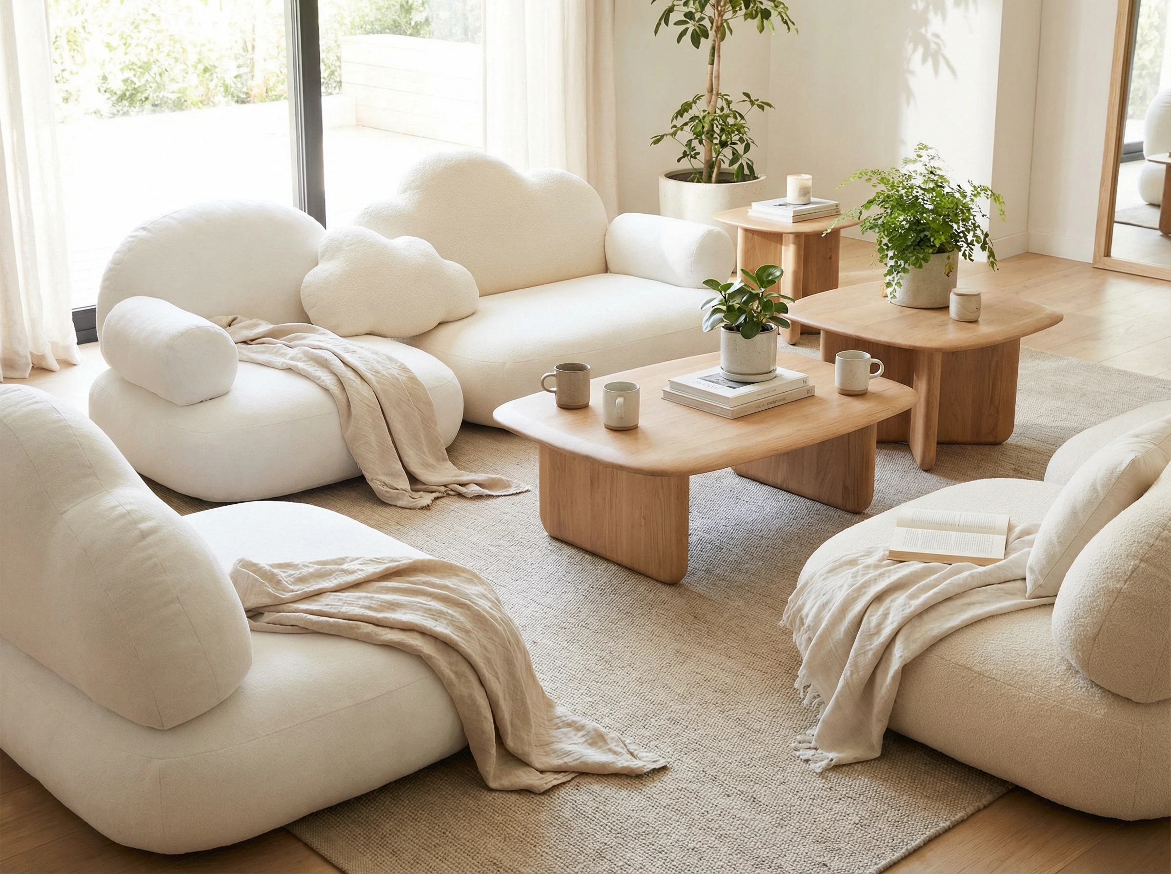 Instead of stiff chairs everywhere, add floor seating with plush pillows.