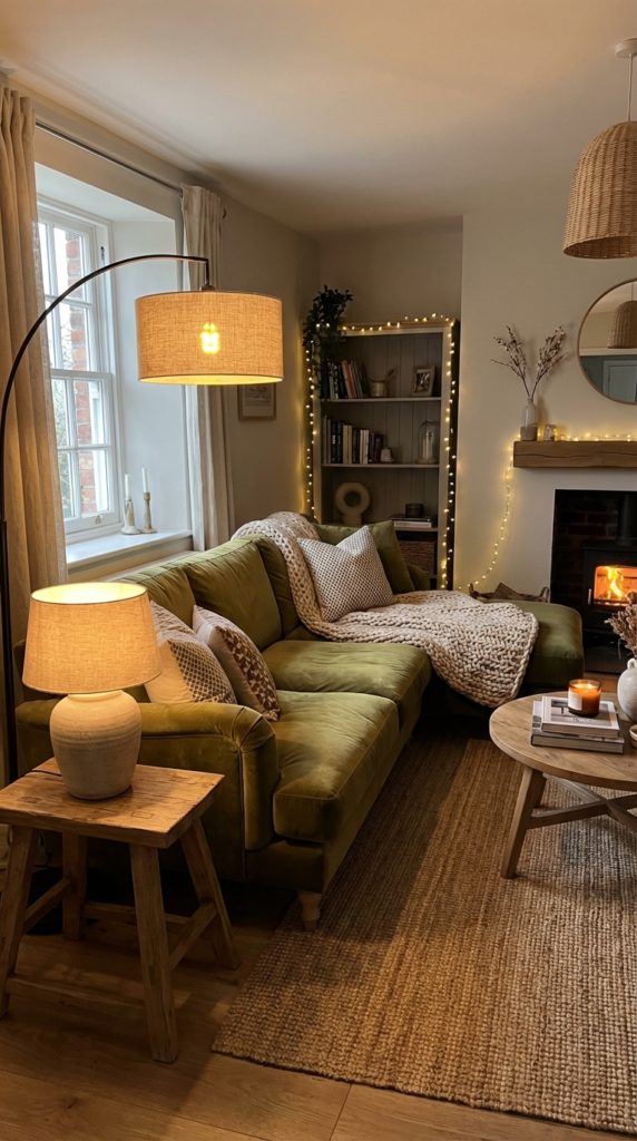 Cozy and chic often comes down to lighting. Use layers, not one harsh overhead source.