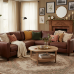 An olive sofa anchors art beautifully, especially with warm frames and mixed textures. This approach adds “lived-in chic” fast.