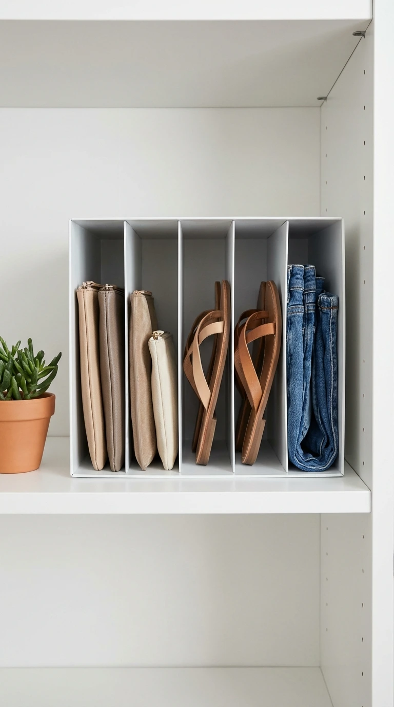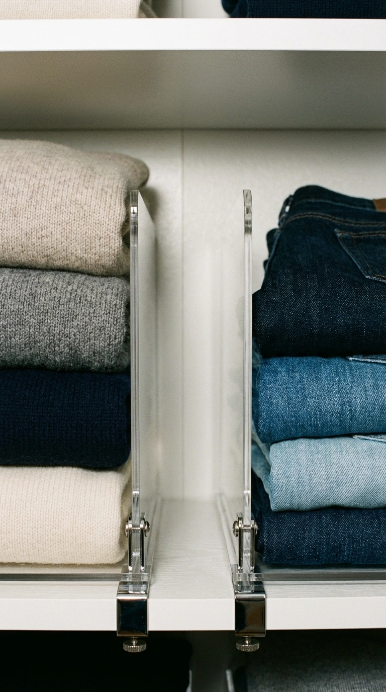 If stacks slump, they blend into one messy pancake tower. Shelf dividers keep categories upright.