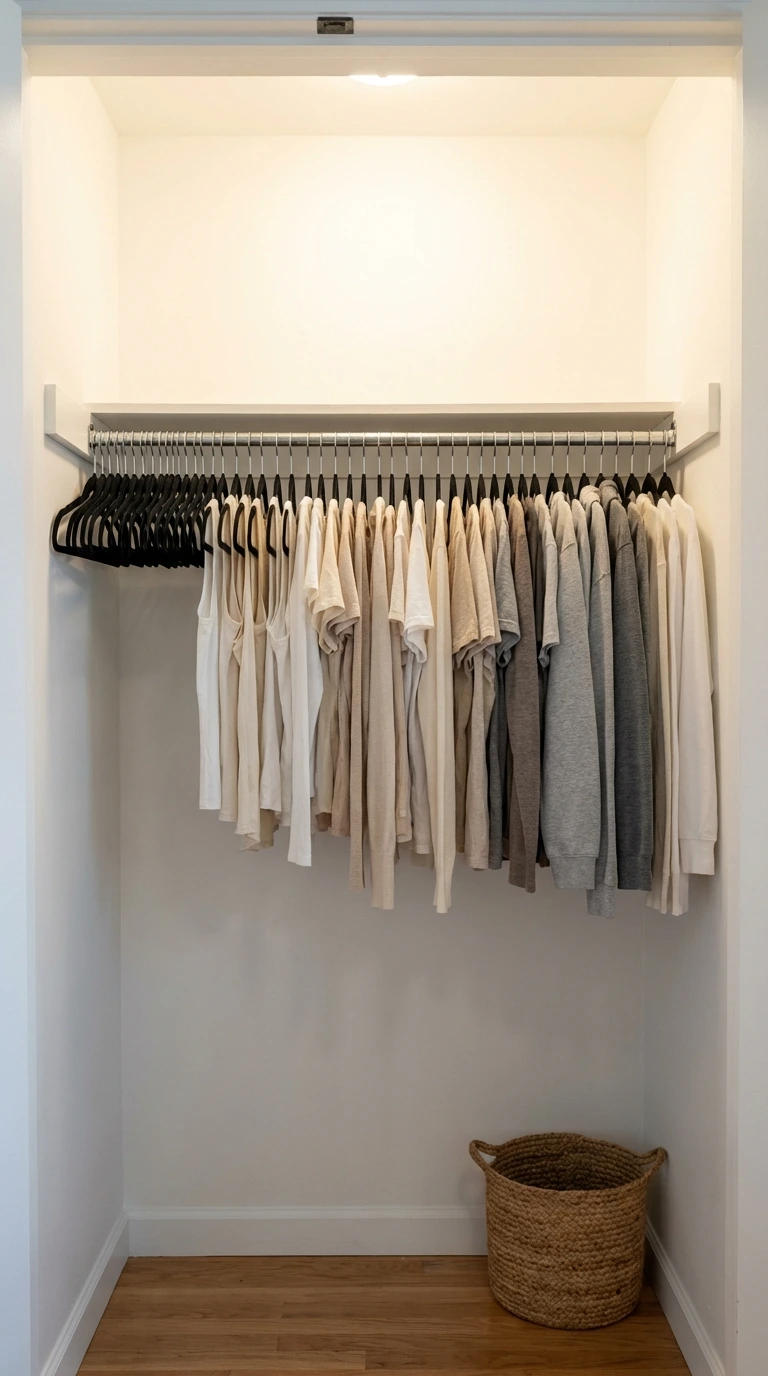 Bulky hangers steal rod space. Slim velvet hangers often free up noticeable room fast.