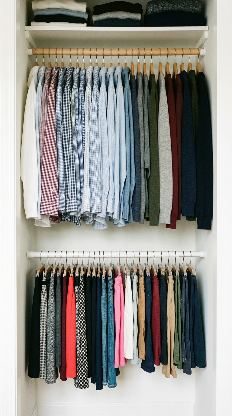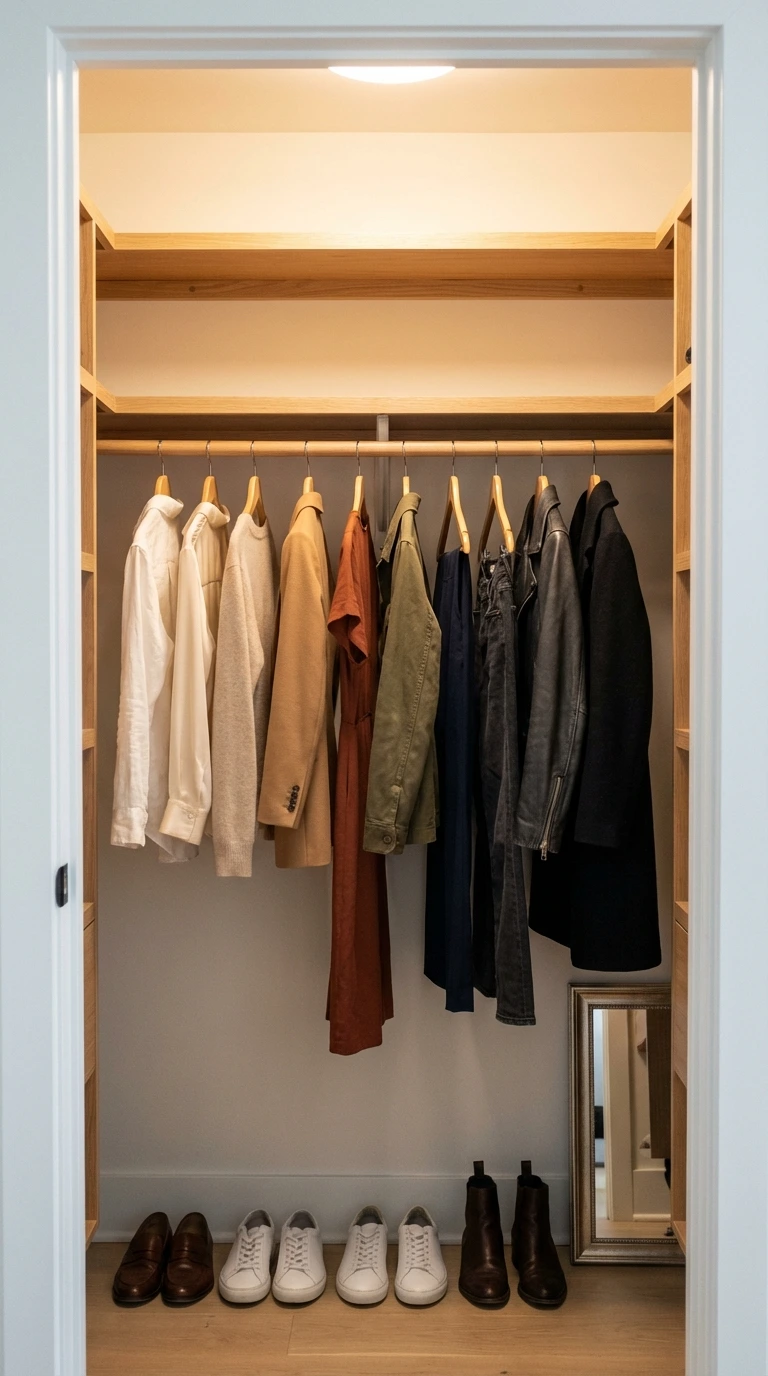 This zoning trick is the backbone of nearly every smart small closet organization ideas post for a reason: it stops the daily closet avalanche.