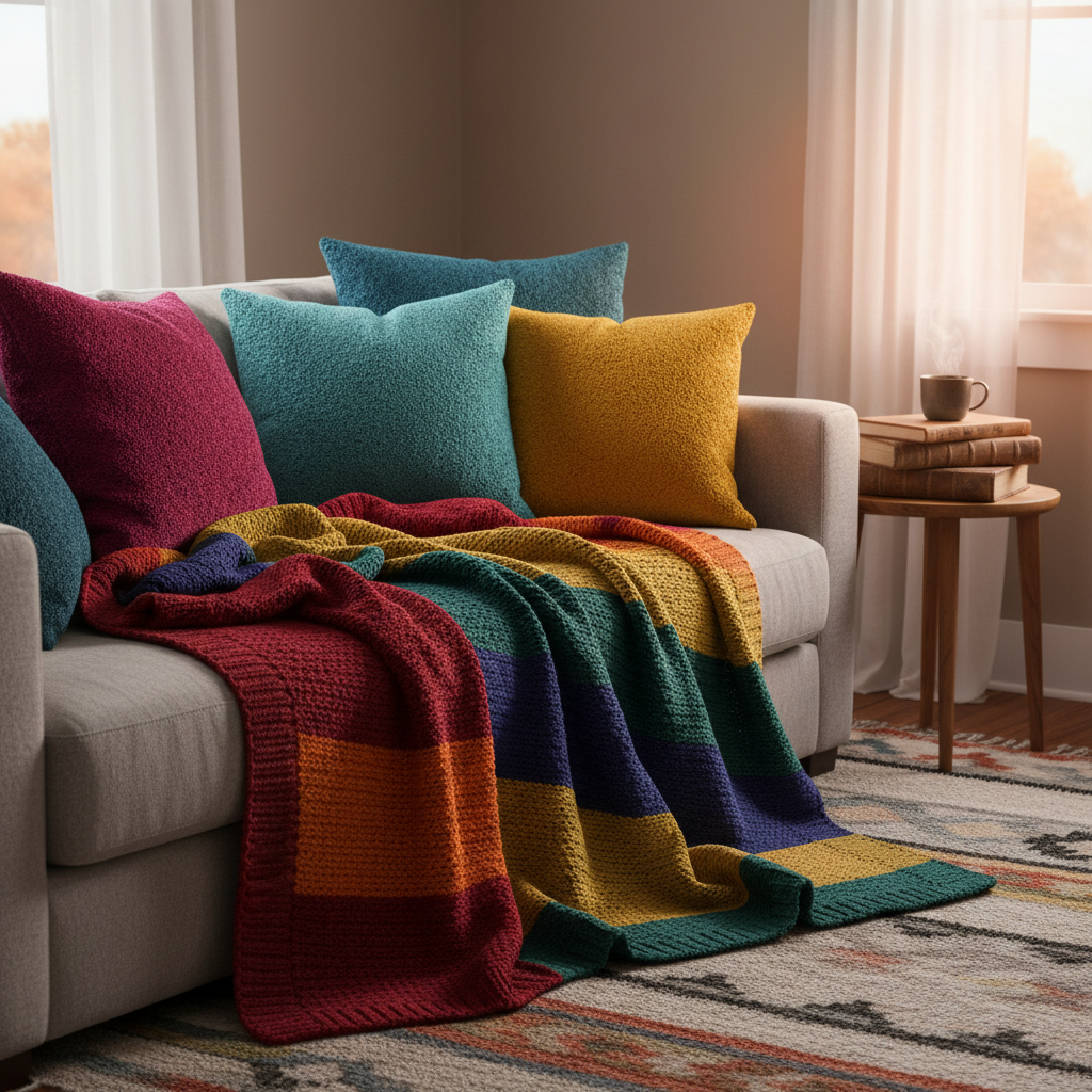 Embrace a boho-chic aesthetic by layering textiles in a vibrant spectrum of colors. Think plush throw pillows in fuchsia, teal, and mustard, paired with a chunky knit blanket draped over a neutral sofa. Incorporate a patterned area rug with pops of orange and blue to define a cozy reading nook. Why it works: Textiles add warmth, texture, and easily changeable bursts of color. Style tip: Mix materials like velvet, faux fur, and cotton weaves for a rich, tactile experience that invites relaxation.