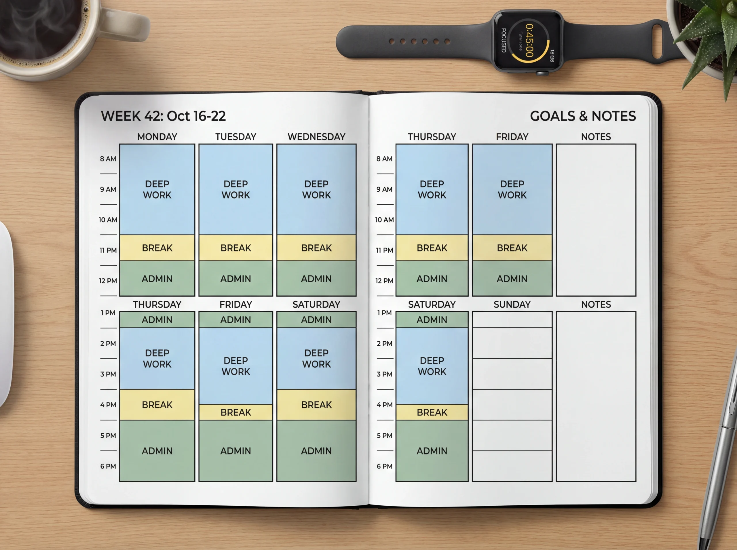 FYI, you don’t need a color-coded calendar masterpiece. I literally block chunks like “Deep Work,” “Admin Junk,” and “Don’t Talk to Me.” Simple works.