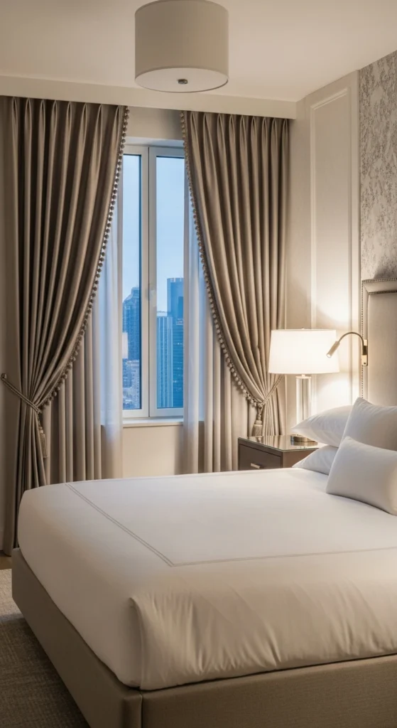 Tonal pom-poms elevate a bedroom the same way a boutique hotel elevates a simple white bedspread—quiet luxury with a tiny wink. When the pom-poms match the curtain fabric, the texture becomes subtle and sophisticated. You notice the detail only when you’re close, which feels intentional and expensive.