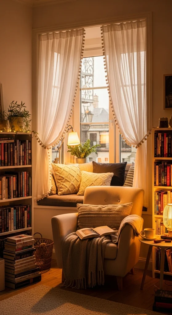 Pom-pom leading edge curtains can do more than dress a window—they can define a whole little world. When you use them to frame a reading nook or bed alcove, they instantly soften the edges and make the space feel cocooned. It’s the kind of detail that quietly invites you to linger a little longer with your book or morning coffee.