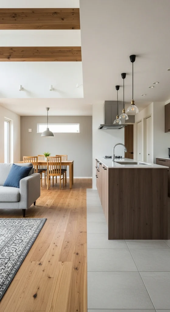 Also think about traffic flow. You should be able to walk between kitchen, dining, and living areas without awkward detours. Any open kitchen and living room partition should guide movement naturally, not create an obstacle course.
