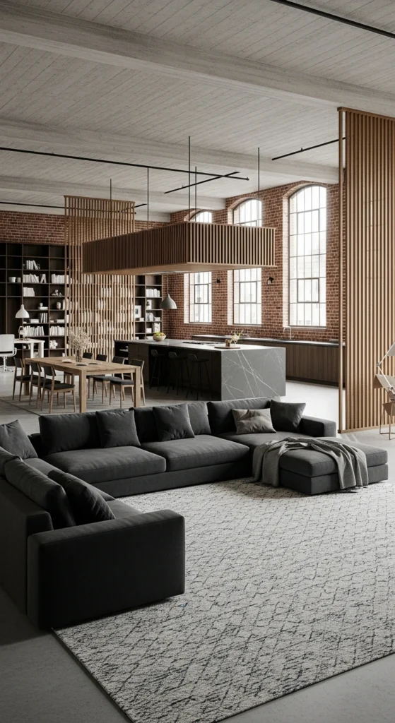 - Use furniture (sectionals, big bookcases) to create clear zones.