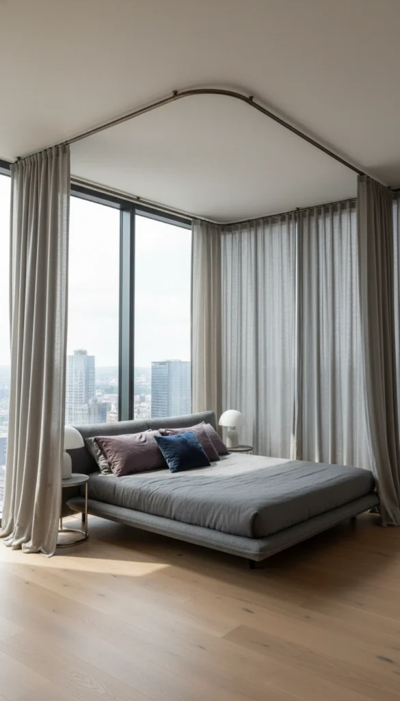 2. L-Shaped Ceiling Track For A Soft, Hotel-Like Look