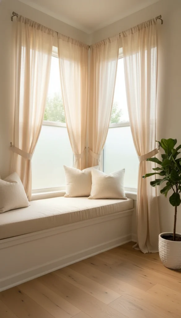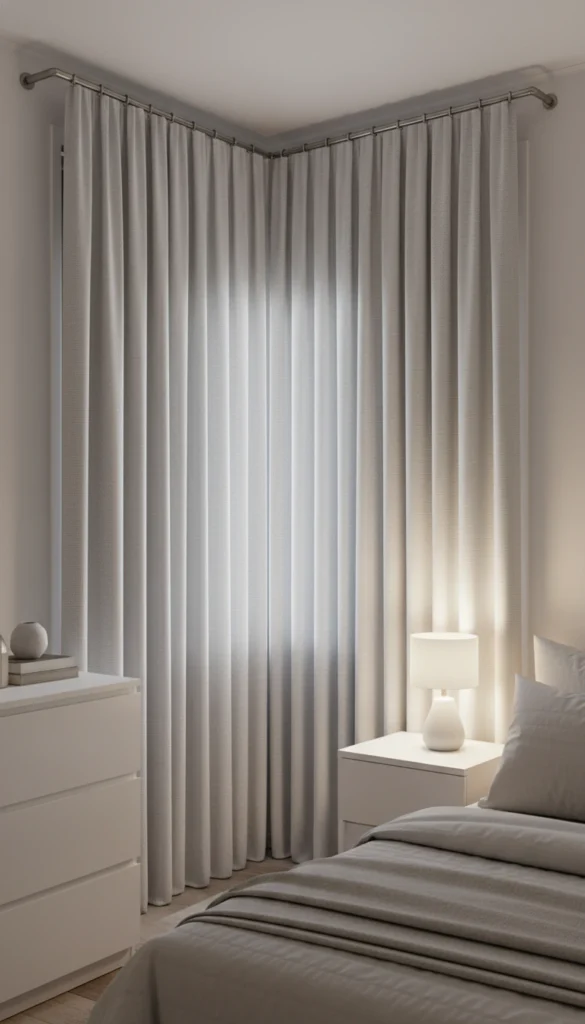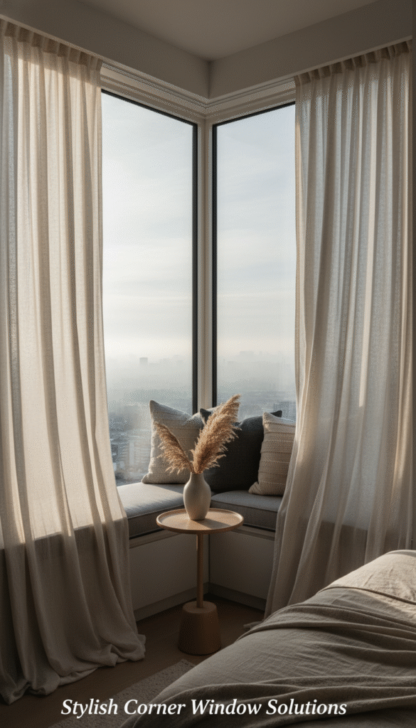 Imagine the corner dressed in fabric like a little stage: Curtains for corner windows frame the scene, not just cover glass. That mindset keeps every choice intentional, from rod shape to fabric length.
