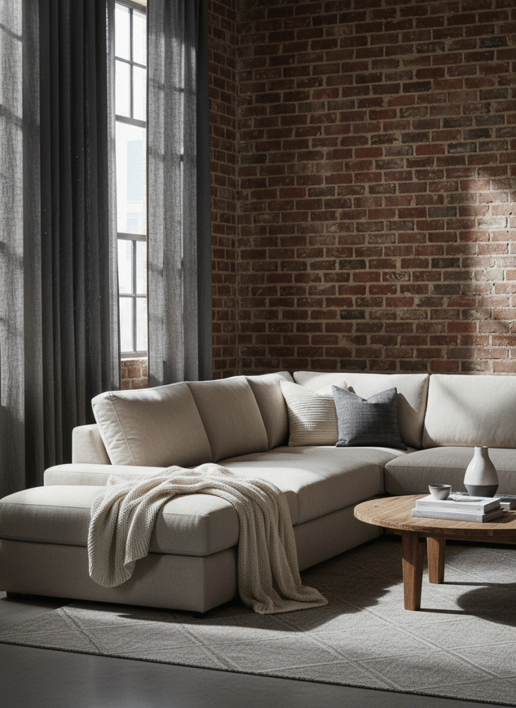 Soften the raw appeal of an industrial space. Pair exposed brick or concrete walls with a plush, oversized sectional. Heavy-weight grey linen blackout curtains offer a striking contrast, providing both insulation and a luxurious feel. Benefit: Adds warmth and sophistication to edgy interiors. Tip: Use metallic accents sparingly for a modern touch.