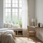 Cultivate a space for ultimate relaxation. Low-profile furniture, like a platform sofa or floor cushions, encourages a calm, grounded feeling. Semi-sheer white curtains in a subtle textured fabric allow soft, diffused light, perfect for meditation or quiet contemplation. Benefit: Fosters tranquility and a sense of peaceful escape. Tip: Integrate natural elements like smooth stones or bamboo.