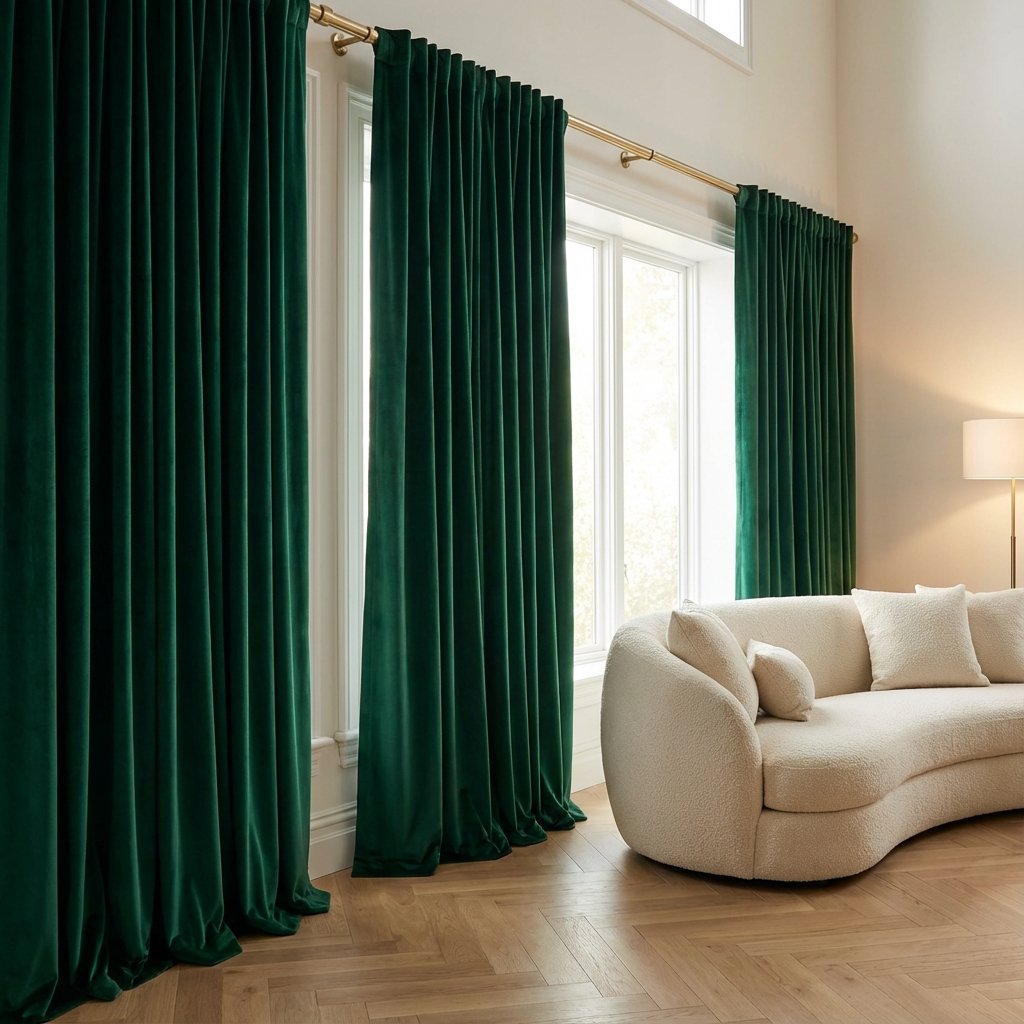Full-length curtains instantly trick the eye into seeing higher ceilings while adding a layer of sophisticated warmth to a living space. They soften the hard architectural edges of a room and provide excellent insulation against drafty windows during cooler months. Heavy fabrics like velvet work hardest here to anchor the design. You should opt for curtains if you prioritize: