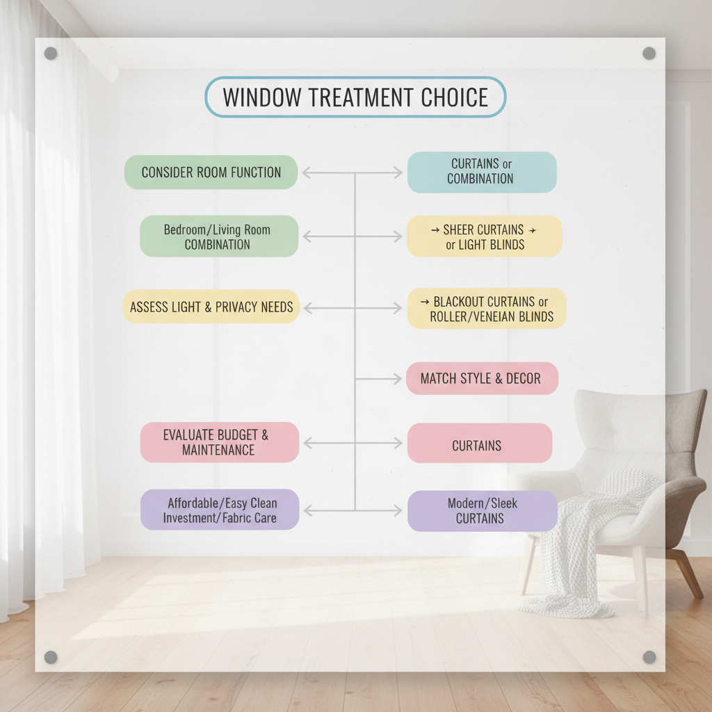 Light & Privacy Needs: How much light do you want, and how private do you need the space to be? Blinds offer fine-tuning, while curtains give broad control.