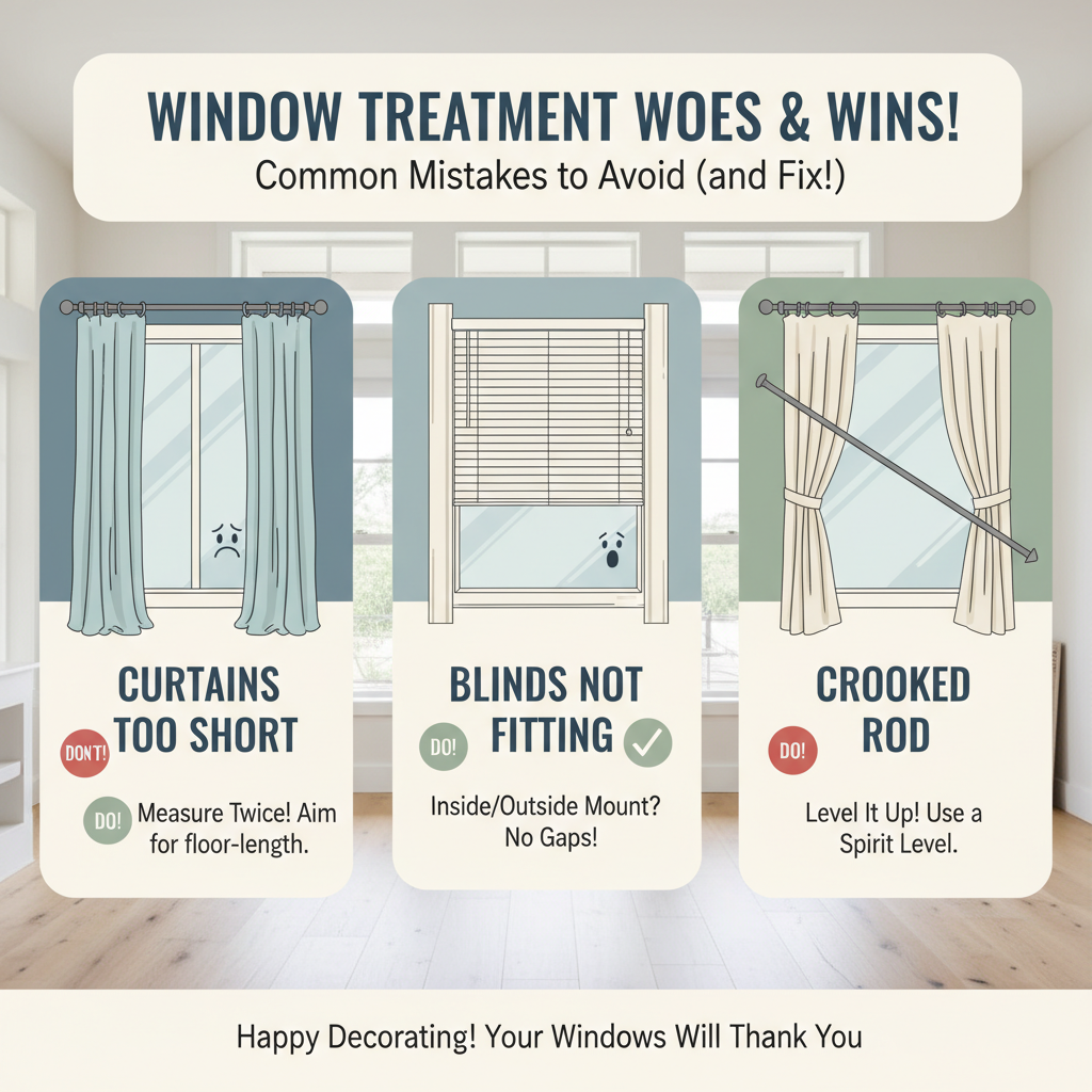 Even the best intentions can go awry. Dodge these common mistakes to ensure your window treatments look fantastic and function perfectly. Wrong Size: Curtains too short or narrow look awkward. Blinds that don’t fit perfectly leave gaps. Measure twice, order once! Ignoring Function: Prioritize light control, privacy, and insulation for the room’s specific needs, not just looks. Poor Installation: Crooked rods or wobbly blinds detract from the aesthetic and can be unsafe. Professional installation or careful DIY is key. Overlooking Hardware: Your curtain rods and blind headrails are part of the design. Choose wisely.
