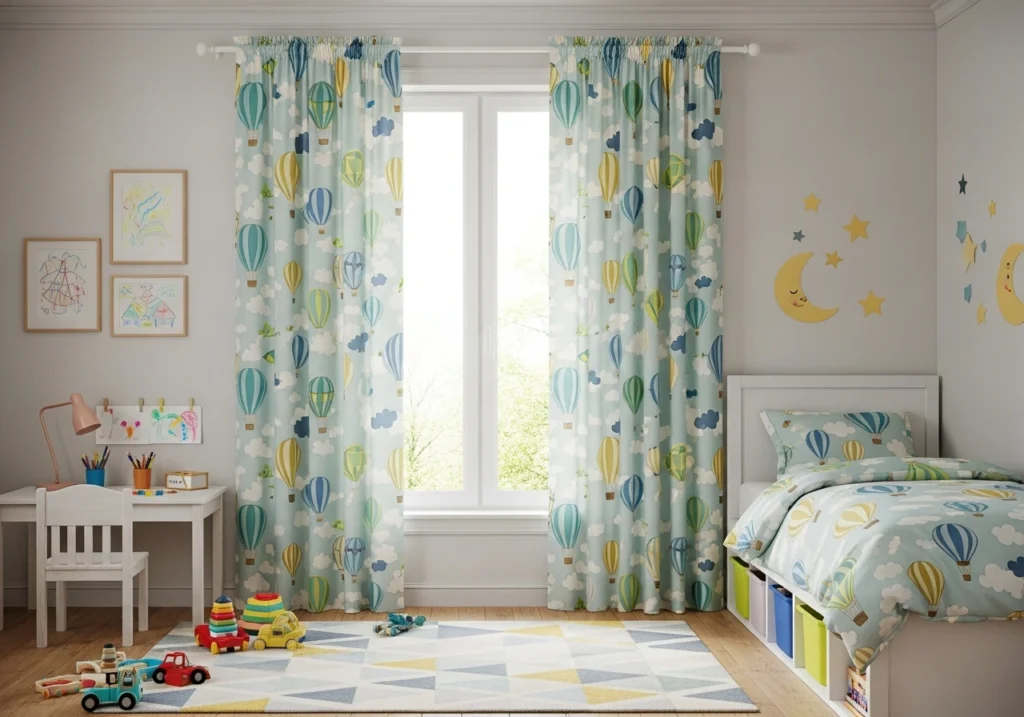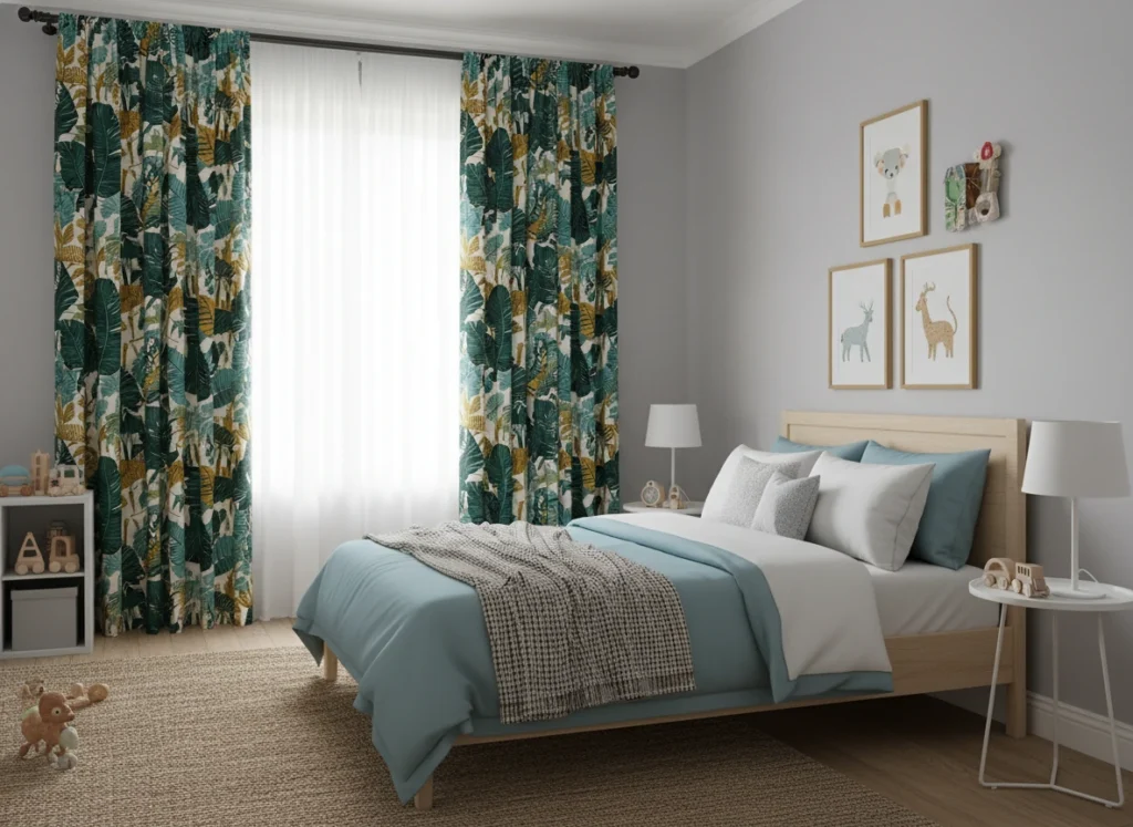 Before falling for a pattern, think about how the room actually works day to day. Is it a nursery where naps are sacred, a play-heavy toddler zone, or a teen cave with a study corner? The more roles the room has, the more you’ll benefit from layered curtains that can switch between bright, soft, and dark.