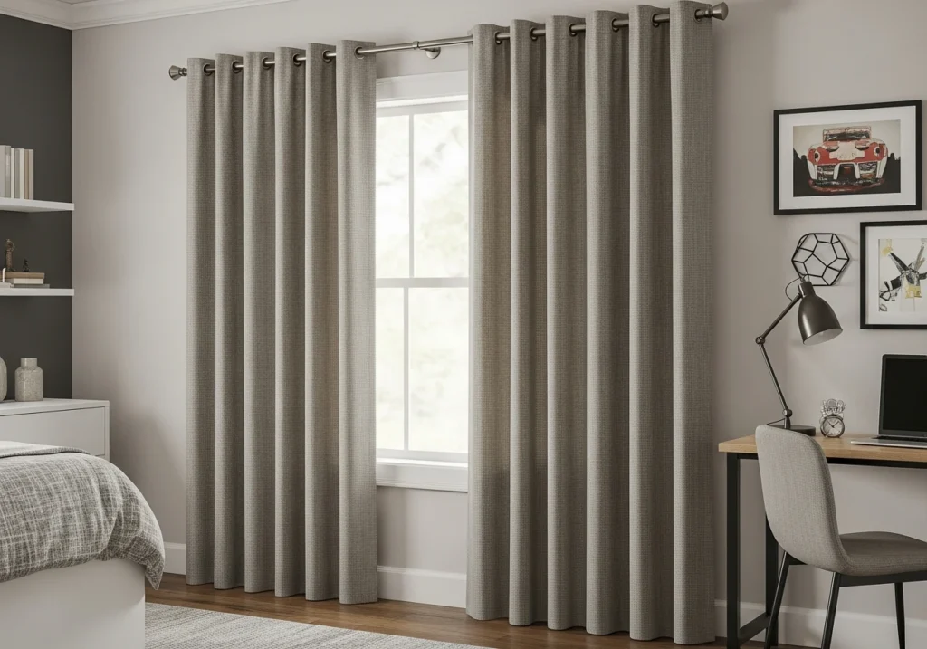 Minimal, neutral curtains are a safe bet for tweens and teens who change their minds weekly about everything else. Soft greys, taupes, or warm beige panels feel calm and grown-up, giving your child a blank canvas for posters, bedding, and fairy lights. They’re also brilliant at hiding the sheer chaos that sometimes lives on the floor.