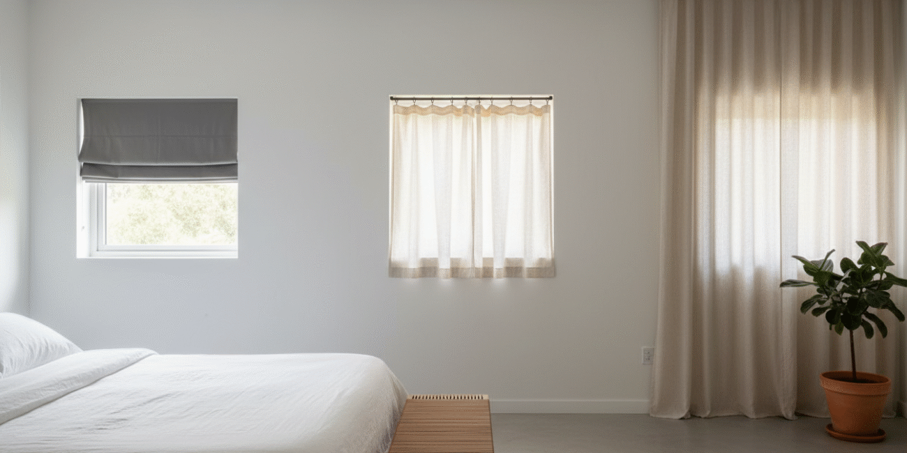 Opt for linen or cotton fabrics in light colors to enhance brightness and maintain an airy feel. They are ideal for bedrooms where you want a blend of openness and discretion, particularly in cottage or eclectic styles.