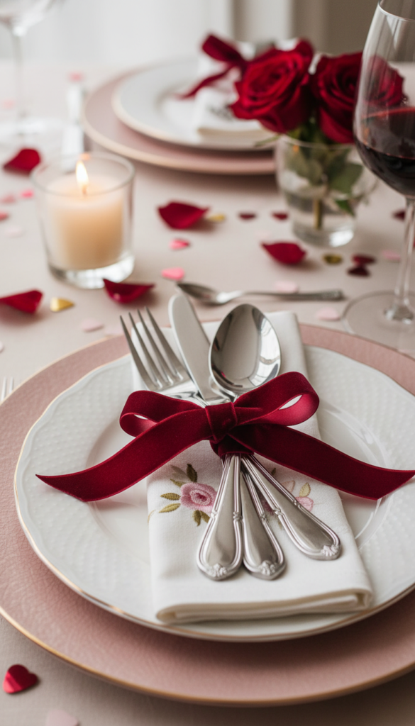 3. Valentine’s Place Settings with Ribbon-Tied Cutlery
