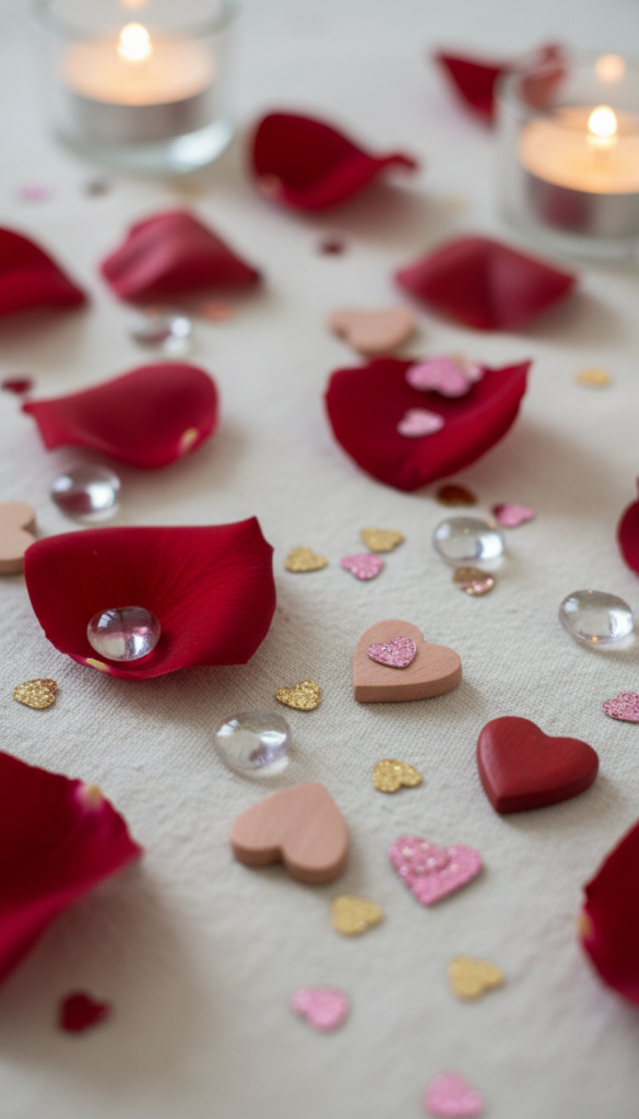 4. Heart-Themed Table Scatter with Petals and Subtle Accents