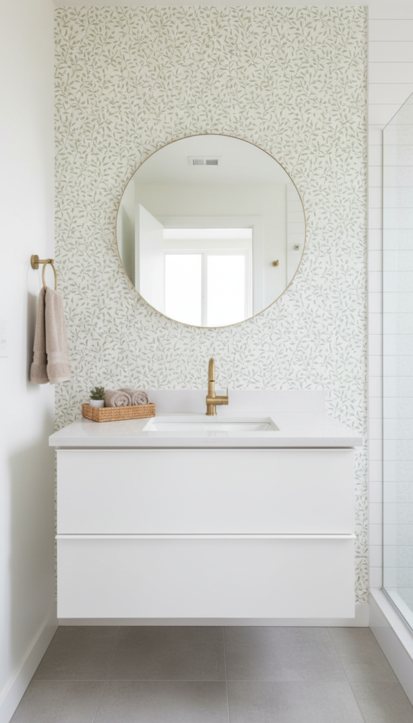 If your bathroom feels plain, a single accent wall instantly adds personality—especially in a powder room or a bathroom with minimal natural light.