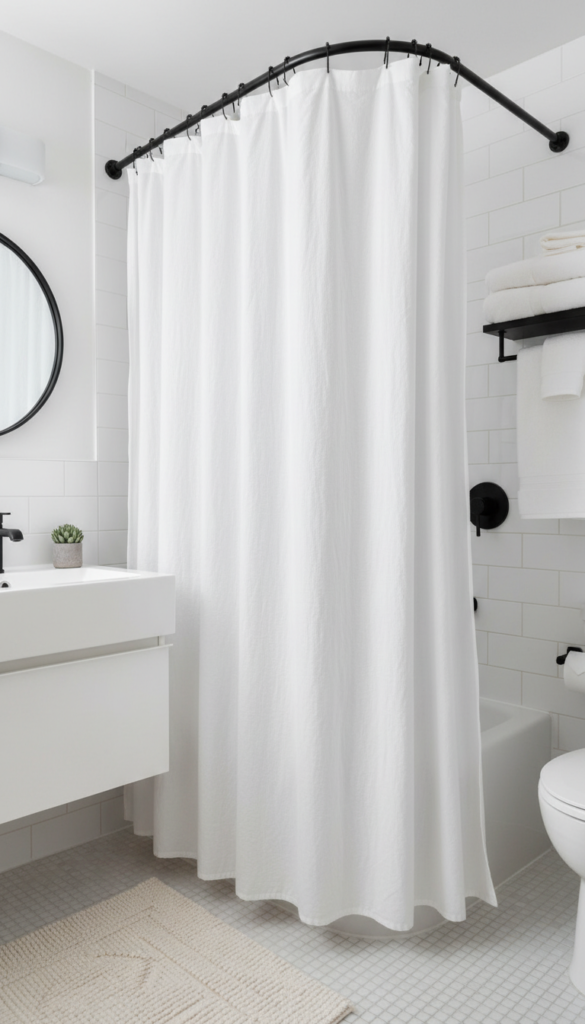 A new shower curtain is basically a giant vertical “print” for your bathroom.