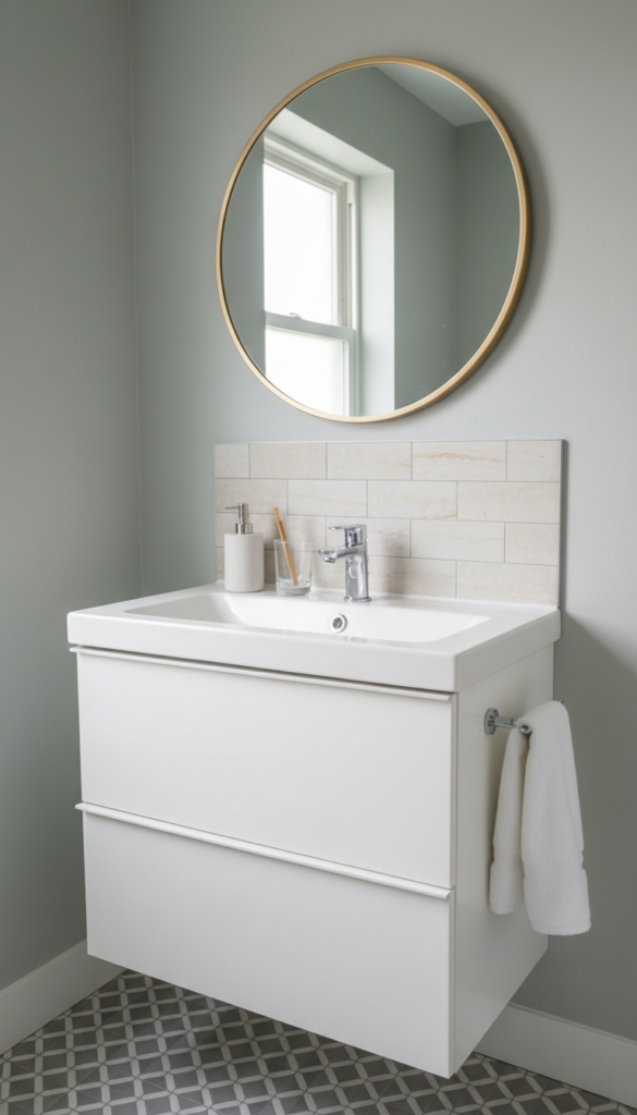Below are modern, high-impact small bathroom ideas designed specifically for renters (or anyone who wants a reversible refresh).