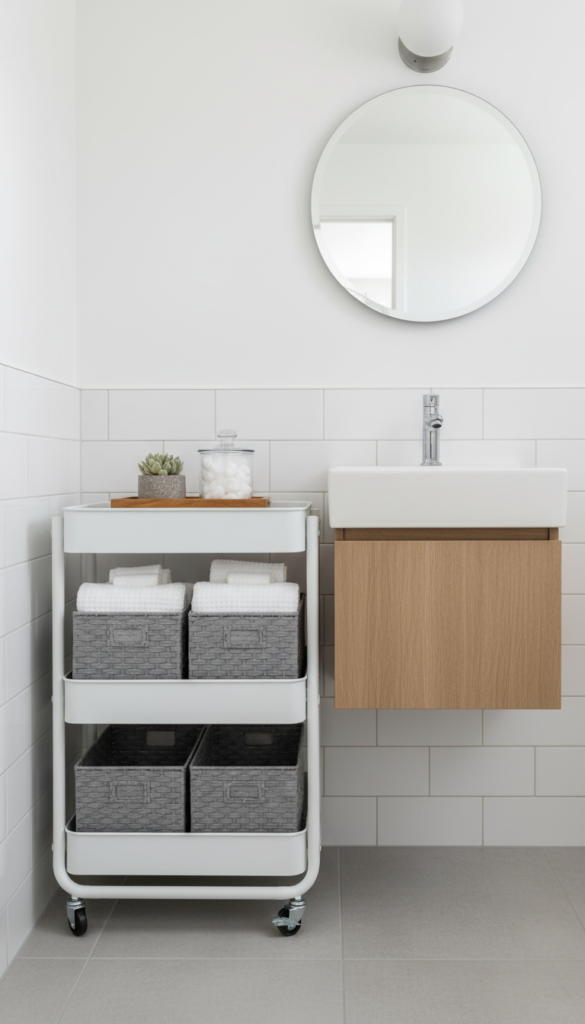 13) Use a Slim Rolling Cart as a Movable Vanity Extension