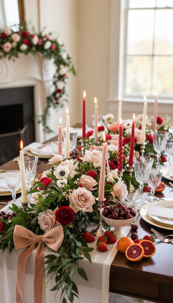 - Add small red accents (rose heads, berries, tiny hearts) between candles