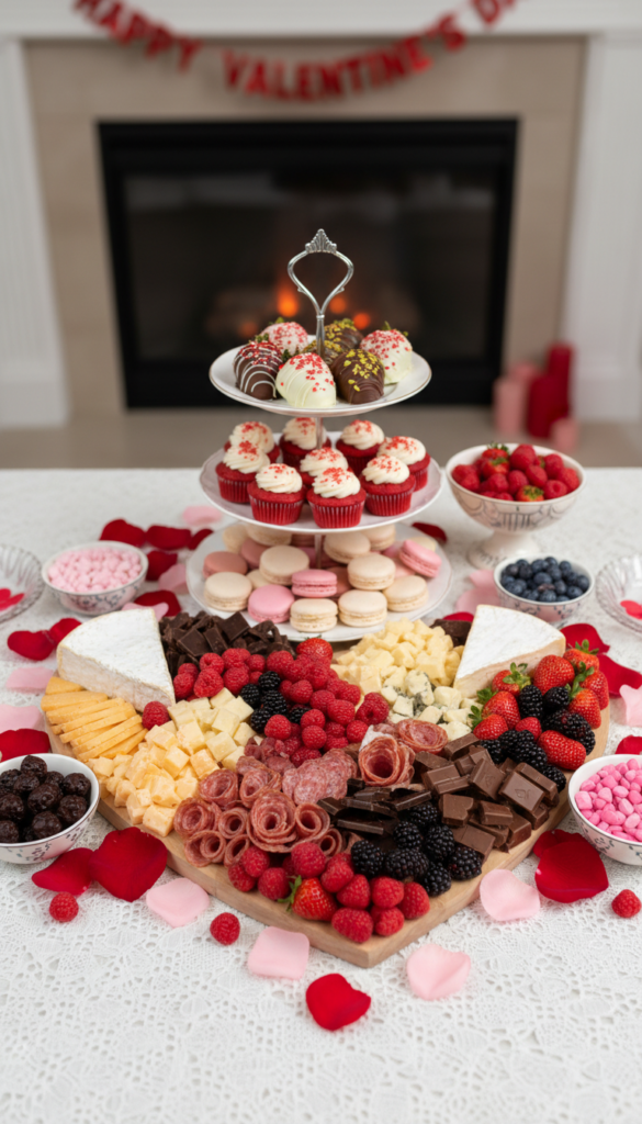- A Valentine charcuterie board (heart-shaped cheeses, berries, chocolates)